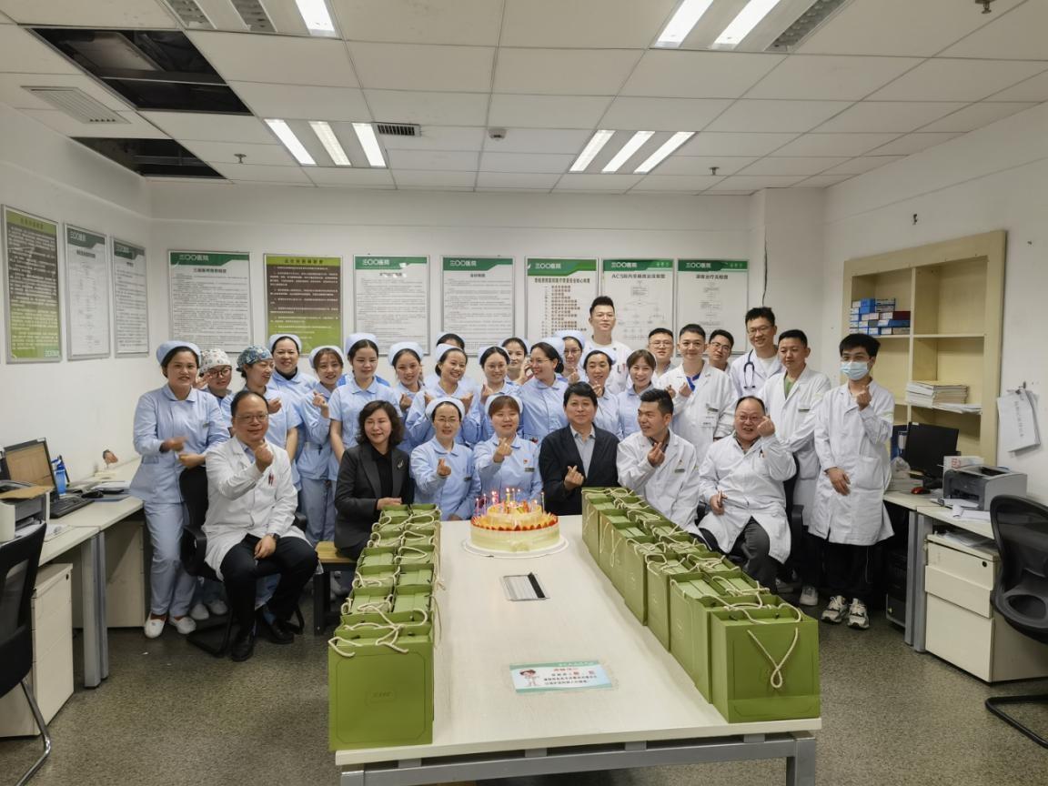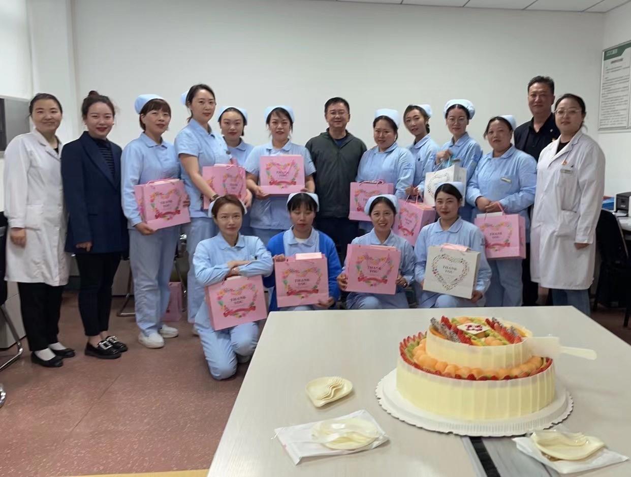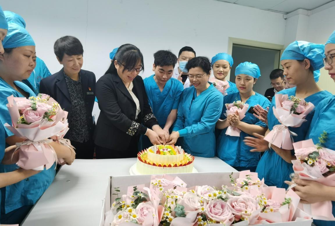 5月12日當天,黨委書記劉濤、院長(cháng)黃琦、紀委書記張雨翔、副院長(cháng)周青、副院長(cháng)田廣、副院長(cháng)羅莉、工(gōng)會主席沃明黔、調研員趙敬飚、院長(cháng)助理(lǐ)楊為(wèi)民(mín)與各職能(néng)部門領導向全院護理(lǐ)人員送上了節日祝福,并為(wèi)美小(xiǎo)護們準備了節日的蛋糕。“蛋糕時刻”分(fēn)别在不同病區(qū)舉行着,天使們手捧甜蜜的蛋糕,綻放的笑容更加美麗動人。